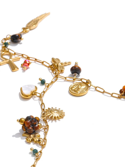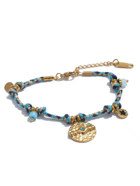 Boho Edelstahl Armband mit Natursteinen & Medaillon