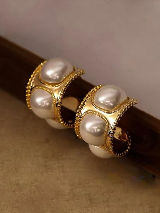 Gold-Perlen Statement Ohrringe