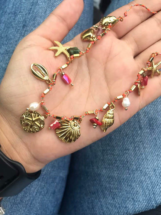 Handgemachte Edelstahl Charme-Kette – mit Kristallen, Natursteinen & Perlen