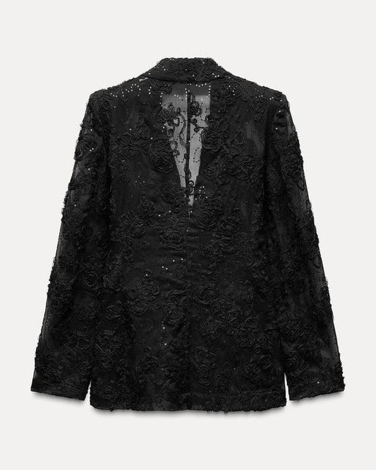 Halbtransparenter Blazer aus Spitze