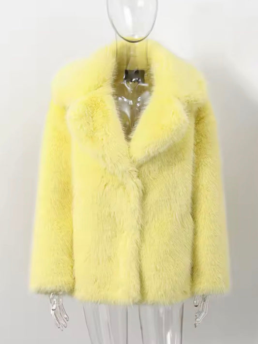 Kunstpelzmantel Pastellgelb