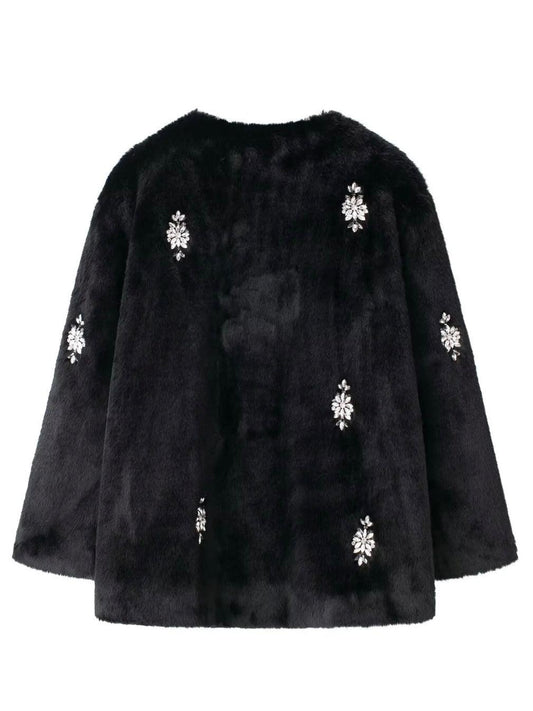 Kunstpelzmantel mit Strass-Details