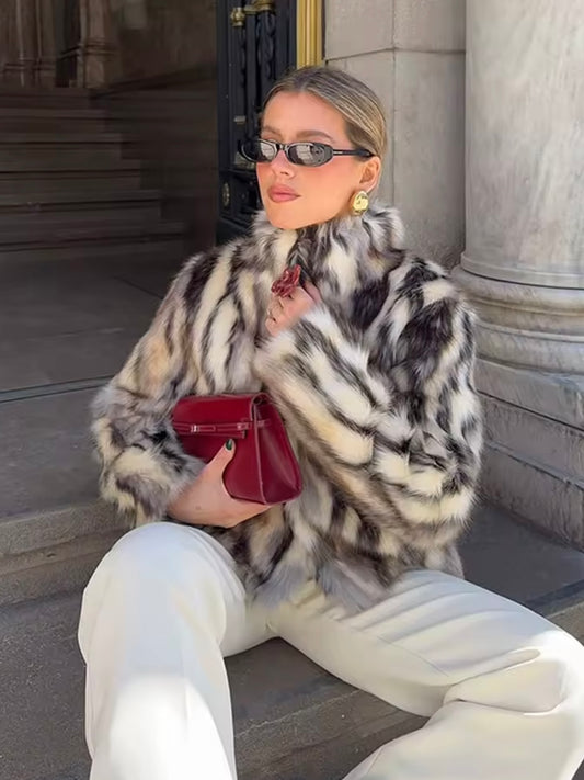 Fauxfur Felljacke im Farbmix