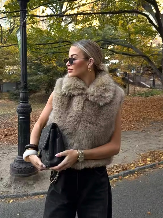 Kunstfell Weste mit Kragen