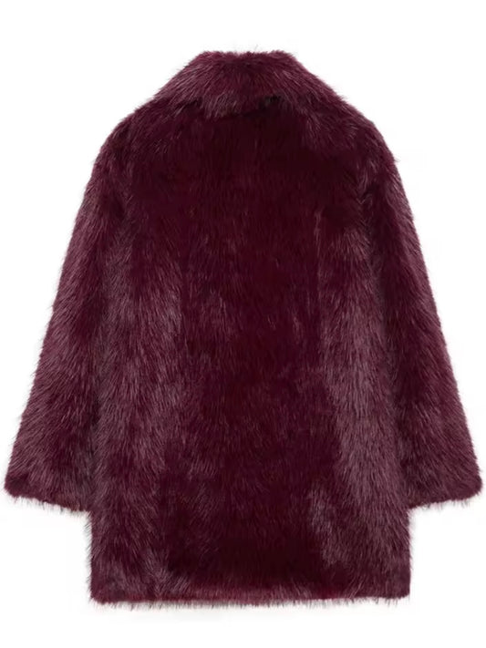 Mittellanger Kunstpelz Mantel in Dunkelrot