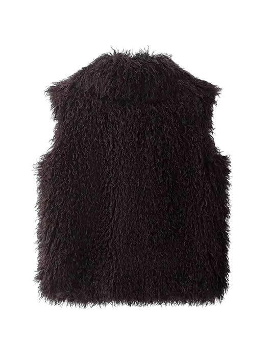 Dunkelbraune Kunstfell Weste im mongolischen Stil