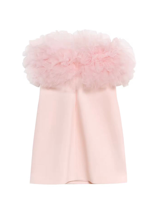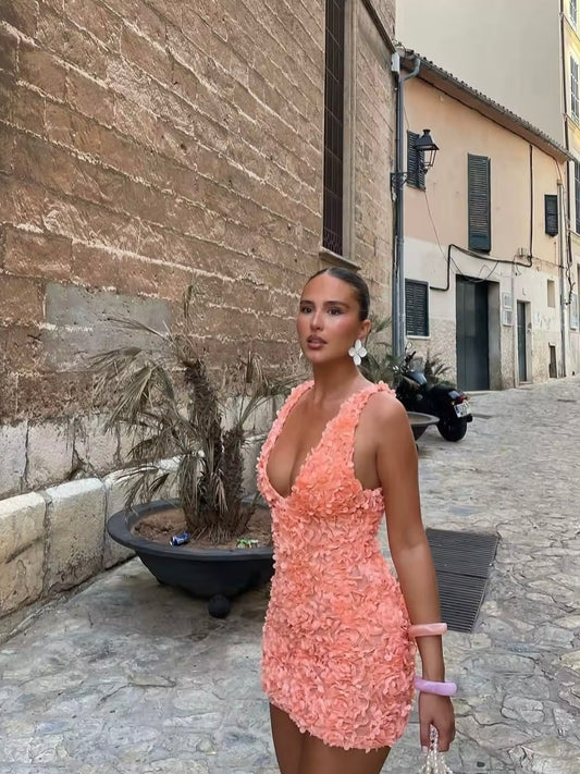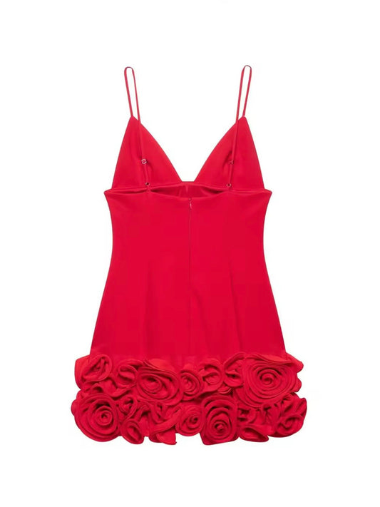 Minikleid in Rot mit 3D-Blumen-Rüschen
