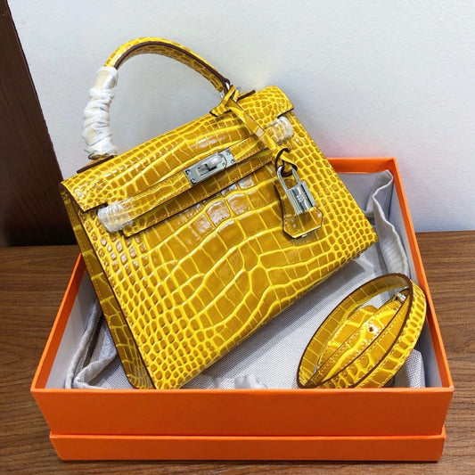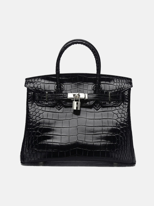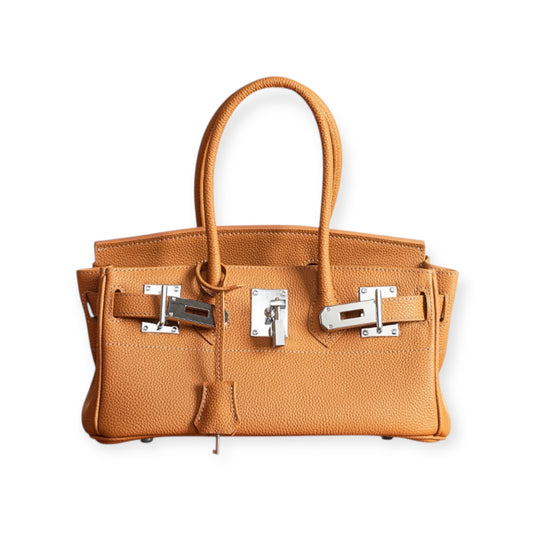 Echtleder Handtasche mit Silber Verschluss 30cm