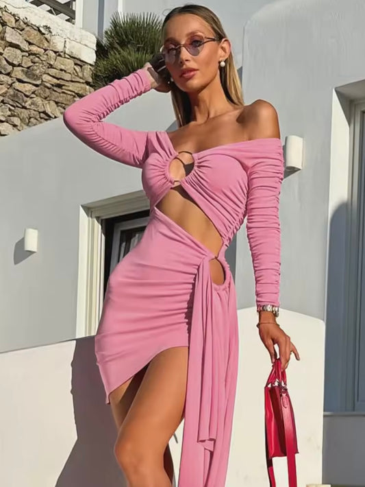 Gerafftes Minikleid mit Cut-outs und Ring Details
