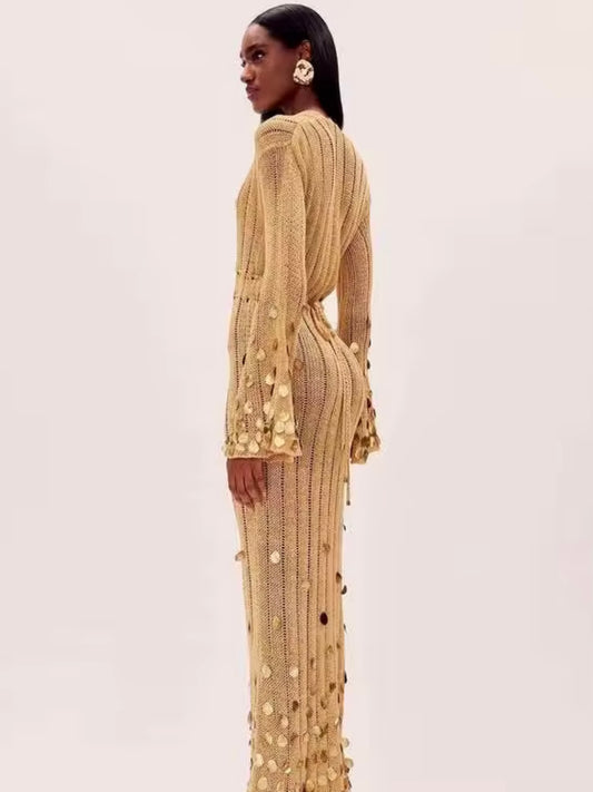 AusverkauftLanges Strickkleid mit Pailletten Details
