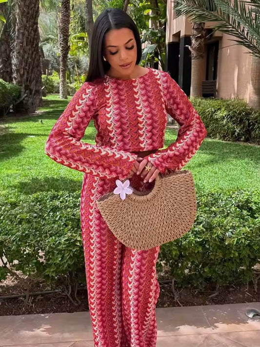 Boho Zweiteiler mit Retro-Häkelmuster in Rot