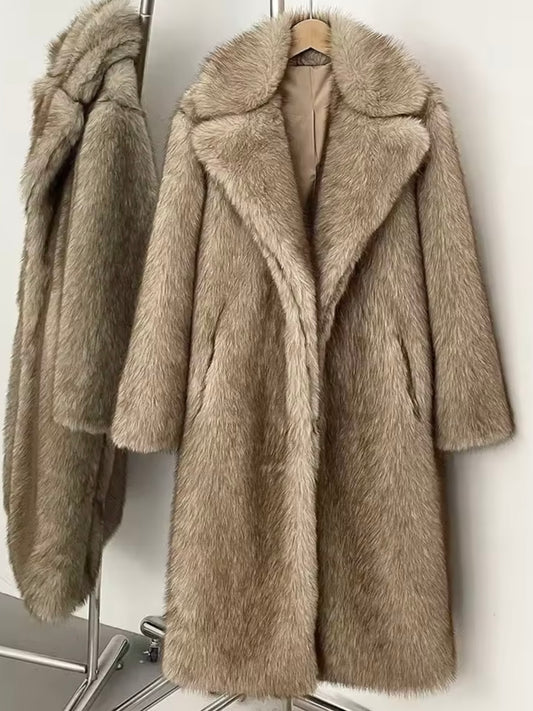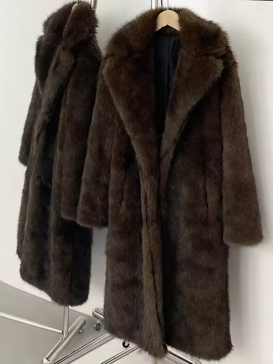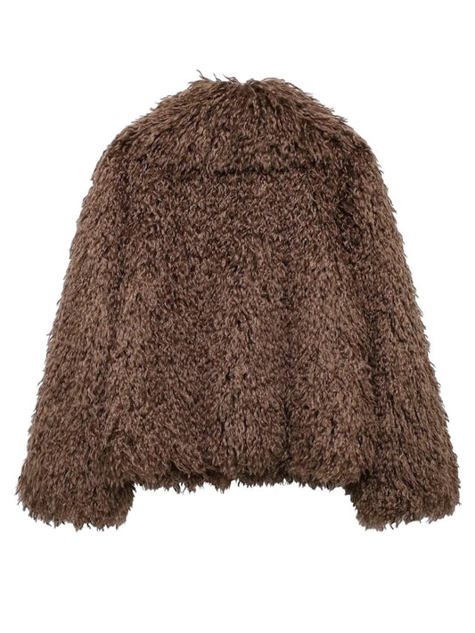 Kunstfell Mantel mit breitem Kragen in Dunkelbraun
