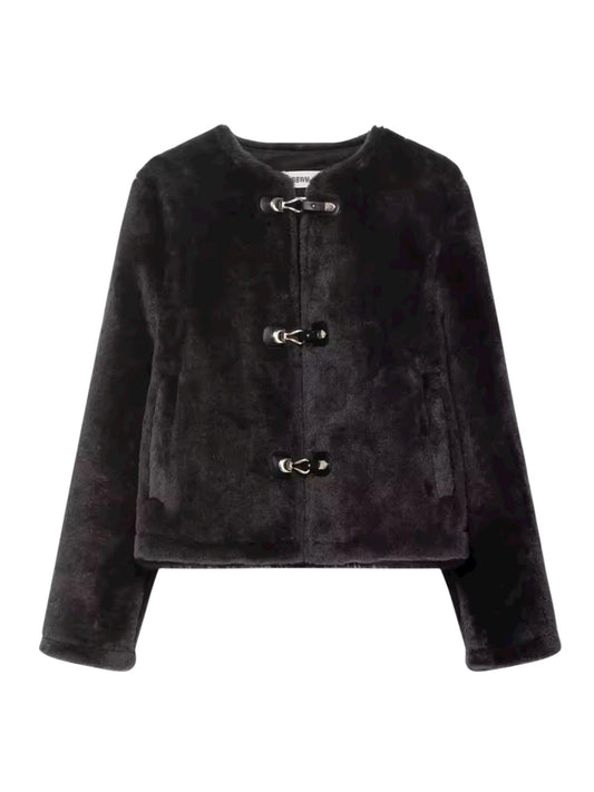 Mongolische Kunstfelljacke mit Kragen & Taschen