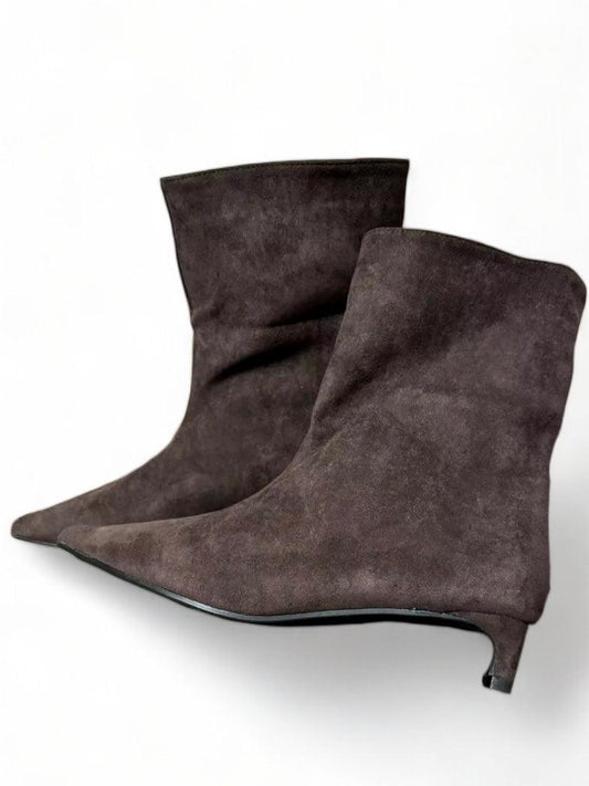 Stiefeletten in Eco-Wildleder mit spitzem Absatz