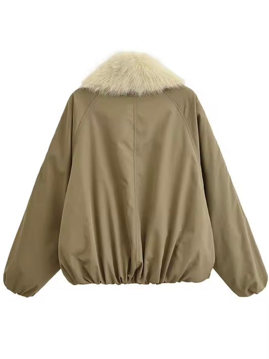 Pufferjacket mit Kunstfell Einsätzen in Olivgrün