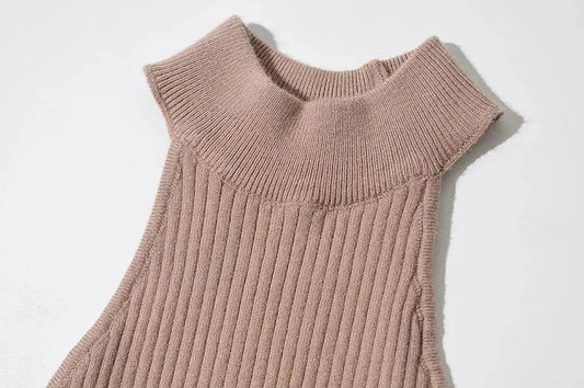 Komfortabler Taillierter High-Neck Rib-Strick Bodysuit in Beige