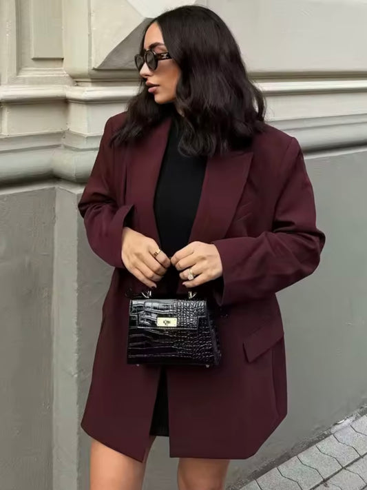 Kurzmantel mit Hakenverschluss – in Bordeauxrot, Schwarz und Beige