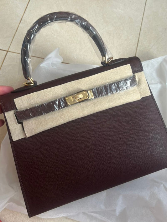 100% Echtleder Klassiker Handtasche 25cm mit goldenem Verschluss