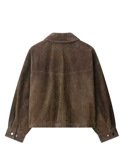 Retro Wildlederjacke mit Reißverschluss & großen Taschen