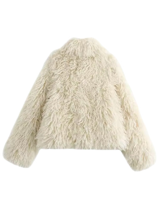 Fauxfur Cardigan hochgeschlossene Kunstpelz Jacke