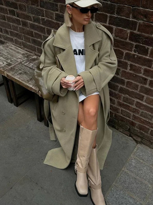 Mongolischer Faux-Fur langer Mantel mit Gürtel