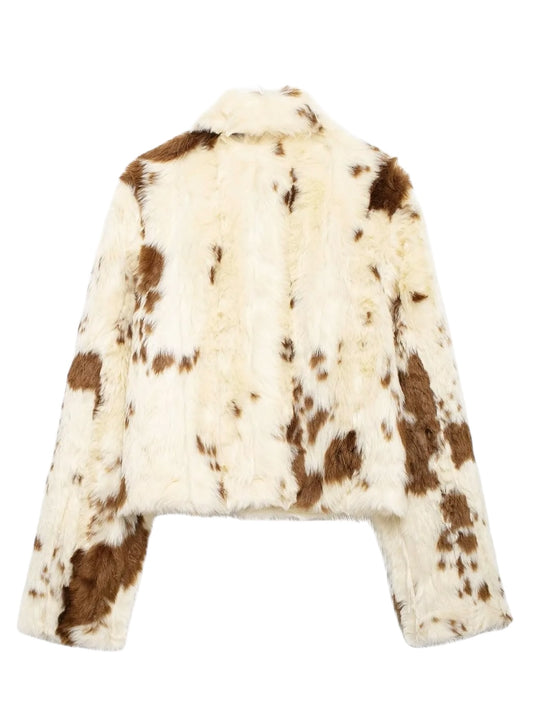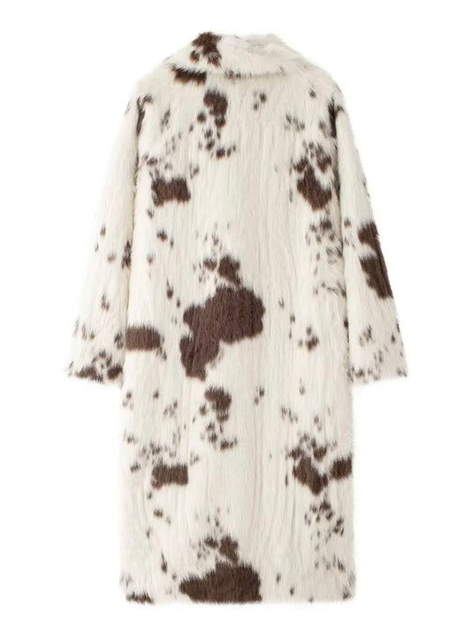 Kuhfell Kunstpelz Maxi Mantel mit Animalprint