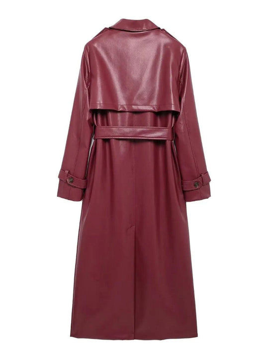 Mittellanger Kunstpelz Mantel in Dunkelrot