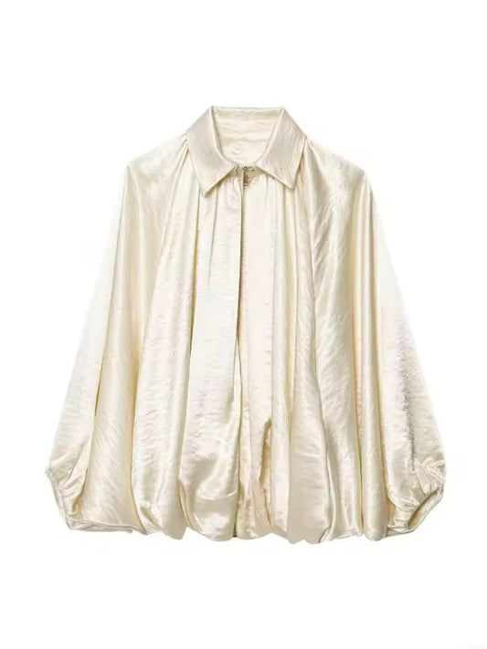 Geraffte Bomberjacke - Hemd mit Reißverschluss
