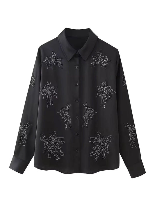 Baumwolle-Satin Zweiteiler mit Perlen Details