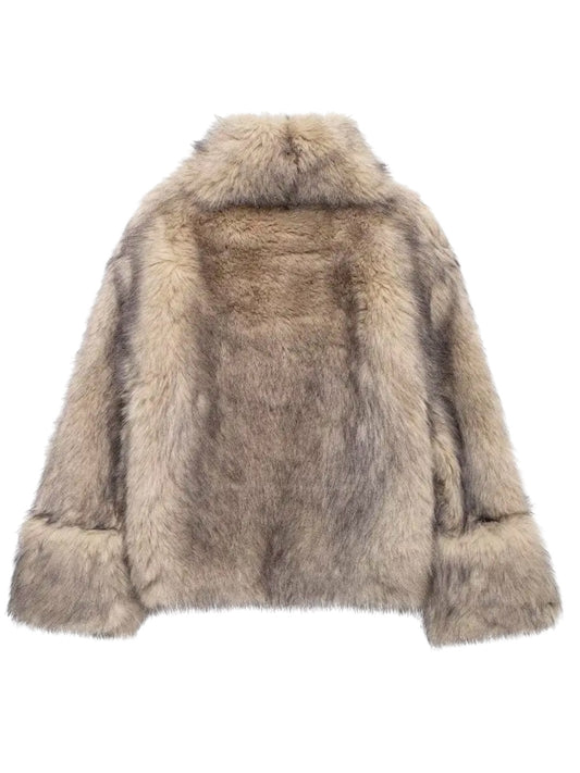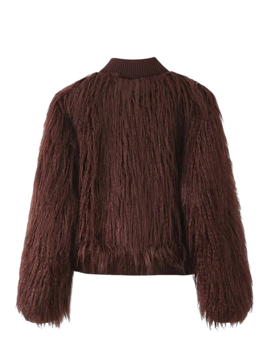 Fauxfur Cardigan hochgeschlossene Kunstpelz Jacke