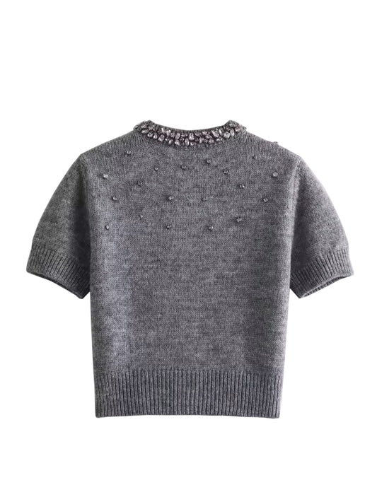 Elastischer Body mit Cut-Outs und goldenen Perlen