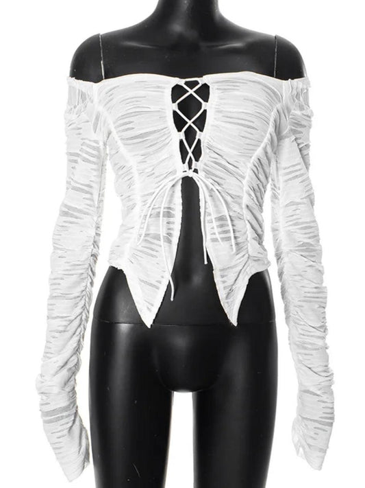 Langarm-Shirt mit Schnürung und Cut-Out-Details