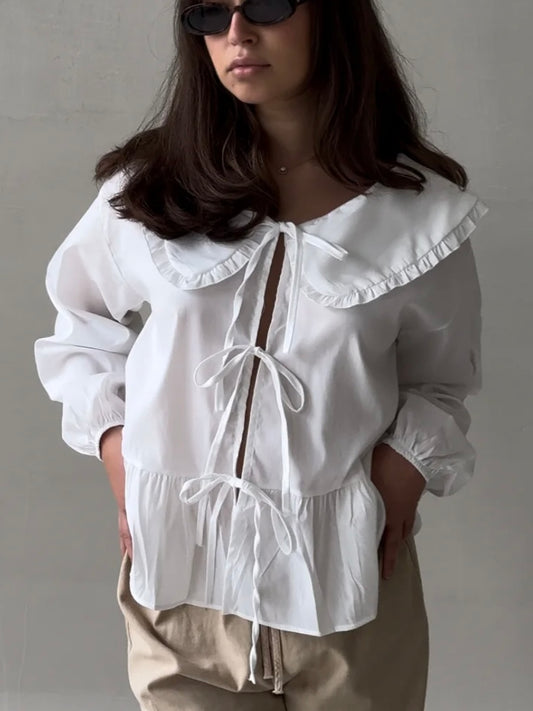 Vorne gebundene Schößchen-Bluse mit Bubikragen