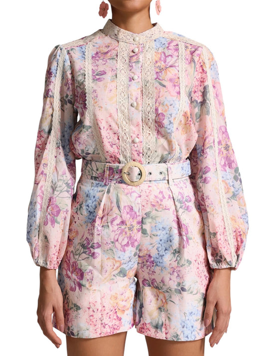 Florales zweiteiliges Set mit Spitzenapplikationen