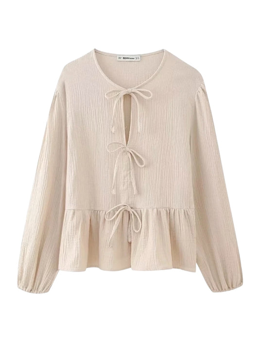 Baumwolle-Satin Zweiteiler mit Perlen Details