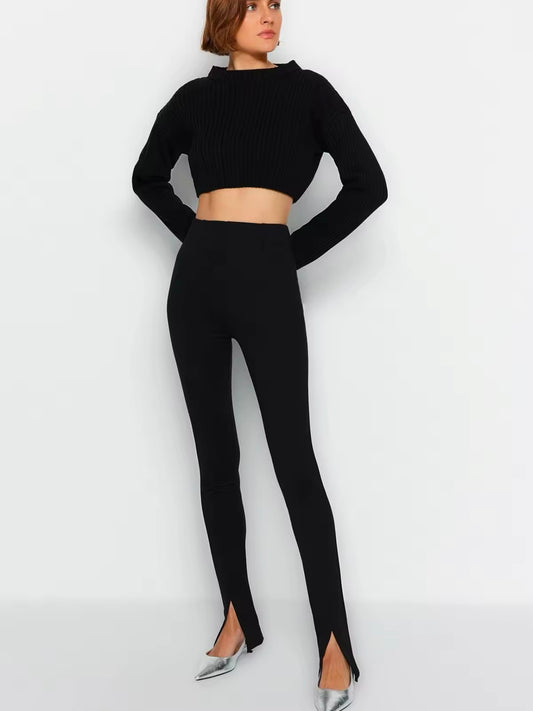 Formende Leggings mit Saumschlitz und Reißverschluss-Detail